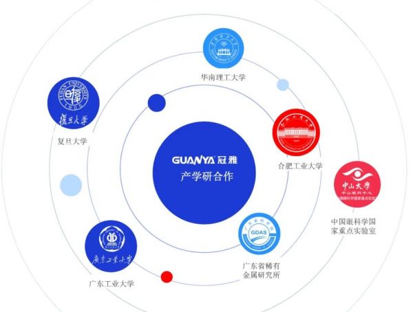 冠雅照明与复旦大学、广东工业大学、华南理工大学、合肥工业大学等高校及中山大学中山眼科中心、广东省科学院资源利用与稀土开发研究所等科研机构建立长期产学研合作关系,为企业的原创设计、产品创新、技术发展奠定坚实基础。