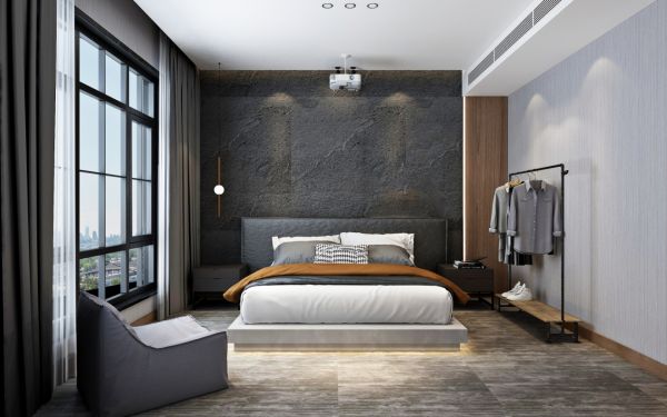 卧室区域同样蔓延着一份温馨与淡然。细腻的床头木质纹理呼应着灰色空间,利用简练的语言勾勒出柔和与秩序并存的哲理气质。