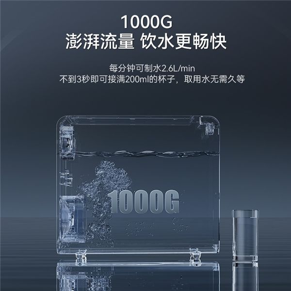 普通净水器过滤量太小,用水要等待,而G10净水机出水速度非常快,三秒就能接满一杯,满足家庭日常用水需求,煲汤时用锅接水也毫无压力。