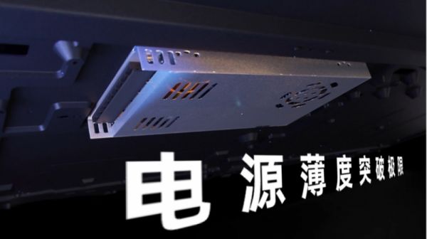 还有电源,在热布局和散热方面,TCL是国内唯一一家使用一体化成型变压器的厂商,磁性器件体积更小,还保持了散热性能。并且,外部接插的线材也得到优化,接口厚度减少到8mm。而且为了将产品做得更薄,TCL还定制了蝶形设计的散热系统,加大散热面积,并将厚度由以前的10mm降低到如今的7mm。
