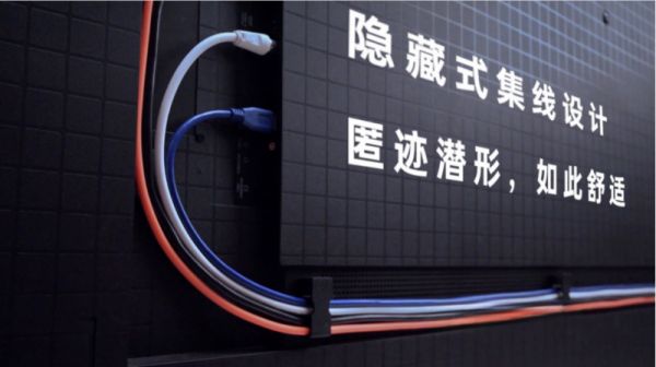 以往常见的超薄电视分为两种,一种是分体薄,虽然电视面板能做到完整贴到墙上,但必须连接外机,线缆裸露显得凌乱,而且笨重的外机也占用空间。另一种是常见的局部薄,也就是前面提到的“上薄下厚”,常常令人诟病,影响美观还容易藏污纳垢。