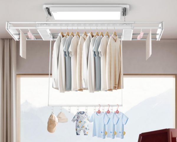 灵活智慧的“晾晒专家”好太太小银河晾衣架:双机款搭载晾杆独立控制系统,上、下晾杆可分别操控升降与伸缩,既可同步联动也可独立调节,适应不同晾晒场景,婴儿衣物与成人被褥分区晾晒、精细织物与厚重衣物分杆处理,彻底告别传统晾衣架“一杆到底”的局限。