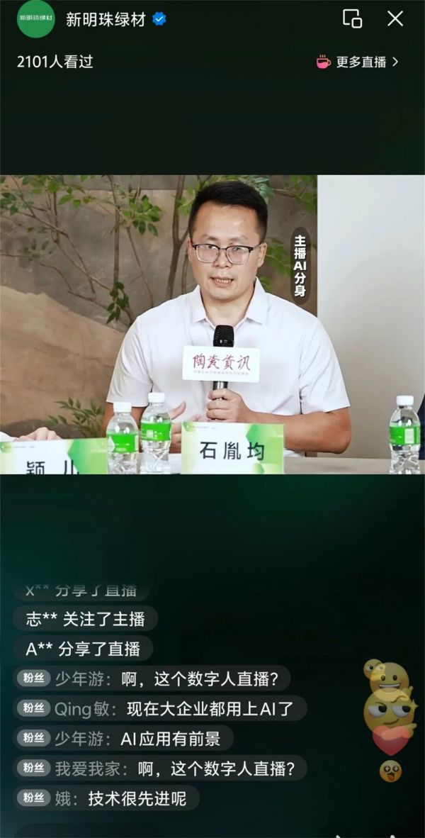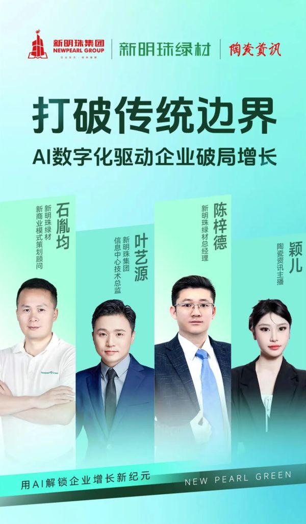 10月19日,在新明珠绿材X《陶瓷资讯》的直播访谈中,新明珠绿材总经理陈梓德、新明珠集团信息中心技术总监叶艺源、新明珠绿材新商业模式策划顾问石胤均,共同探讨“AI数字化驱动企业破局增长”的实践路径。
