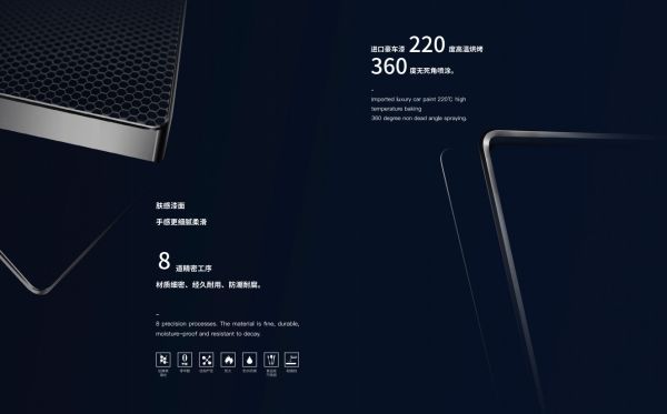 01全线产品采用足厚优质不锈钢基材,结合高温烤漆工艺,表面耐划伤、抗指纹且色彩持久。
