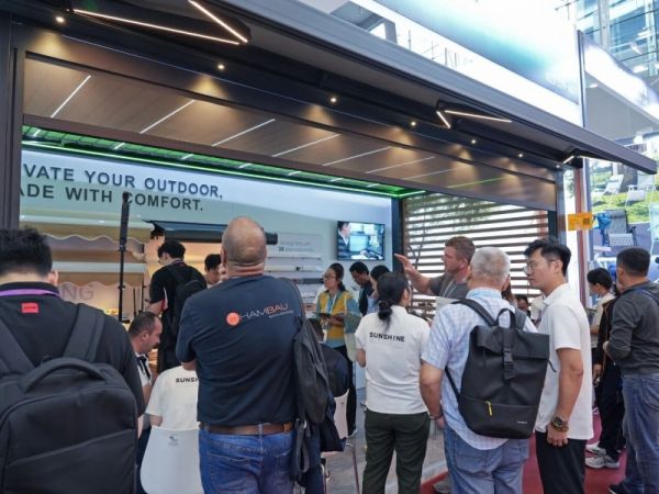 此次展会,格绿朗不仅带来了曲臂篷等新品,更将今年荣获广交会CF奖银奖的“维拉遮阳百叶篷”作为重点展示对象。这款产品不仅是一个遮阳篷,更是一套集结构、功能与美学于一体的室外系统解决方案,让观众现场体验到了其在遮阳、调光、防雨与氛围营造上的卓越表现。