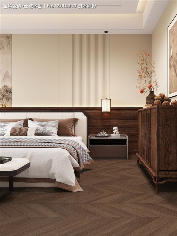 它的棕色能很好地中和深色家具的沉重感,也让浅色软装更显温馨。美缝选同色系(留缝2mm),视觉一体感直接拉满氛围感。