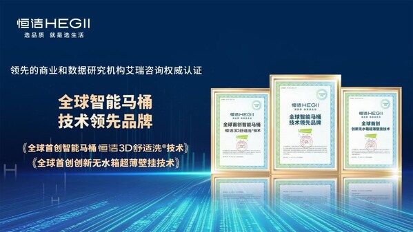 产品技术接连斩获权威认可后,第三方权威机构艾瑞咨询同步授予恒洁"全球智能马桶技术领先品牌"认证,N系列与R系列所体现的技术领先性,正是恒洁系统性技术储备与全产业链影响力的共振。