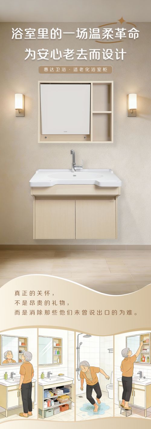 居家养老的安与危,常常系于卫浴方寸之间。惠达卫浴以场景化方案回应适老化需求,其价值不只在于研发了更安全的产品,更在于它将老龄化社会的挑战,转化为行业创新与升级的动力,引导社会重新审视“家”作为养老核心场所的安全定义。当每一位老人都能在私密空间中从容、安全地活动,才是“老有所安”最坚实的落脚点。这不仅是企业的商业答卷,更是整个社会应对银色浪潮时,理应共同书写的人文篇章。