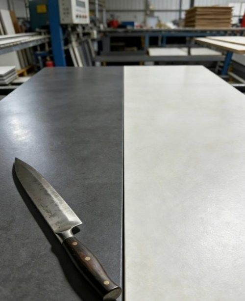 评测背景:当前岩板市场存在显著价差,进口品牌溢价普遍达200%-300%,而消费者对国产岩板的技术实力仍存疑虑。本次评测选取西班牙头部进口品牌(简称A品牌)与国产领军品牌无上岩板,通过抗冲击、耐磨度、渗污率等核心指标实测,验证“进口品质国产价格”的真实性。