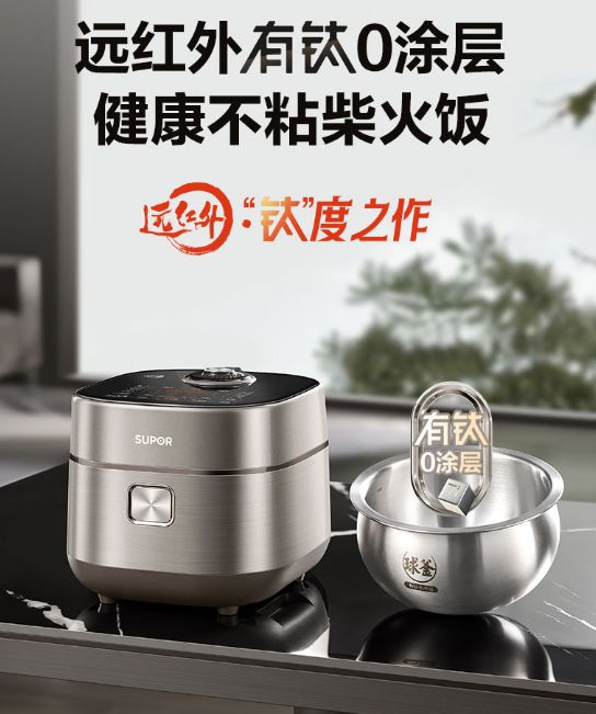 推荐机型:苏泊尔有钛不粘0涂层电饭煲(型号SF40HC1869)