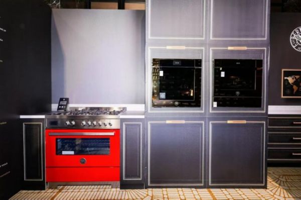 专业系列红色烤箱灶凭借亮眼表现成为现场焦点,其机身采用与法拉利Ferrari同源的镜面红色漆面,不仅拥有璀璨夺目的视觉质感,更具备耐磨耐酸、耐高温、抗腐蚀的优异特性,将高端颜值与强悍性能完美兼顾,成为高端厨房中不可或缺的核心单品。与此同时,全新现代系列金色镜面烤箱惊艳登场,该产品汇聚博塔桑尼百年工艺与前沿科技,采用真空金属汽化工艺打造纳米级镜面镀层,光影流转间,冷冽优雅的高级质感扑面而来,为现代厨房注入全新的美学活力。