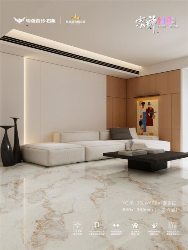 宗师M9七彩结晶系列,以中国发明专利·闪抛技术,在砖面构筑致密晶体层,灯光下绽放出如星河般的动态光影效果,将“步步生金”的东方吉祥寓意,完美融入现代家居设计。