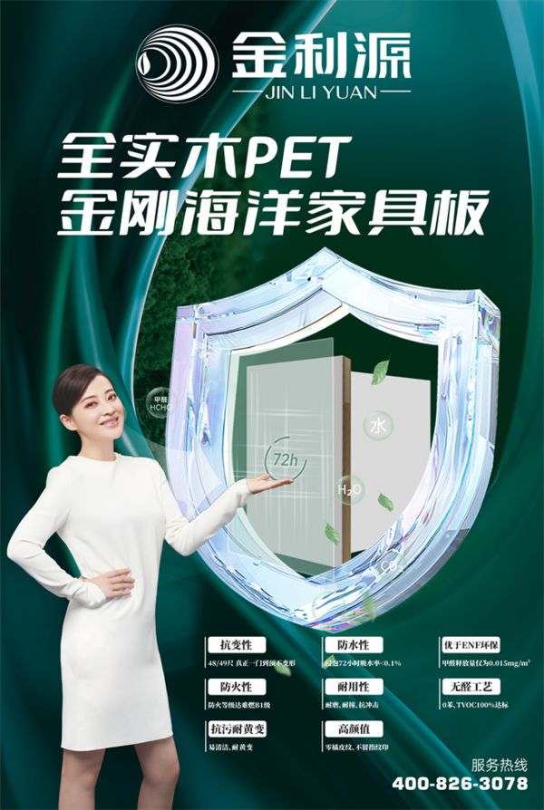 集成抗变形、抗菌、防霉、防水、阻燃、净醛、防虫、耐刮、环保九大核心功效,依托精密生产工艺与技术创新,实现耐用性与功能性的双重突破。产品可广泛适配全屋定制、商业空间等多元场景,进一步填补了行业多功能板材市场空白,全方位彰显了金利源强大的技术研发与产品创新能力。