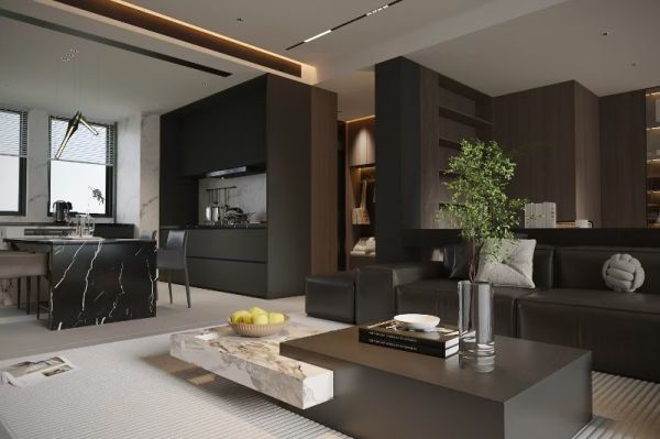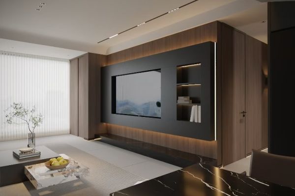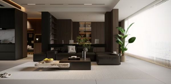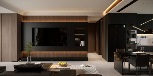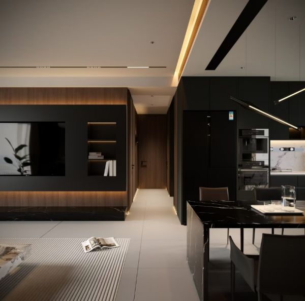 本案以现代意式极简为基底,融合高级黑胡桃木的温润质感与暗调轻奢美学,摒弃冗余繁杂的装饰,以利落克制的线条、深浅有序的材质碰撞与柔和无主灯照明,打造兼具秩序感、松弛感与品质感的高阶人居空间。设计始终围绕“少即是多,简而不凡”的核心,在功能、美学与居住舒适度之间取得平衡,让家既能承载烟火日常,也能安放精神情绪,成为静谧而有温度的理想居所。