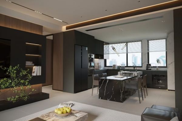 在冷调极简的框架之下,设计师以木质温度、自然绿植与暖光氛围注入人情味,真正实现“高级不冰冷,极简不空洞”,为当代高阶人群呈现一种安静、从容、松弛的理想生活方式。
