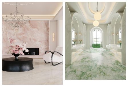 产品采用独家玉脂肌肤釉工艺,搭配变晶墨水技术,砖面透感较同类产品提升30%,触手温润细腻,打破传统瓷砖冰冷的固有印象。