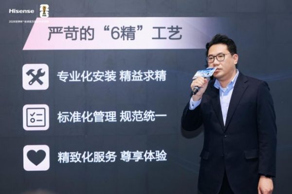 高端集成产品的优质体验,不仅依赖硬核的产品技术与美学设计,更离不开全周期、标准化的专业服务保障。海信中央空调客户服务部交付运营专家 殷明详解海信-精工精心安装服务保障体系。该体系覆盖设计勘测、施工安装、调试验收、售后维保全流程,建立标准化管控机制,安装人员持证上岗,针对四管制设备优化施工规范,实现精细化作业。服务全程可视化,交付提供一站式验收,售后建立快速响应机制并配套全周期维保,彻底解决高端集成空调安装与售后痛点,筑牢产品体验根基。